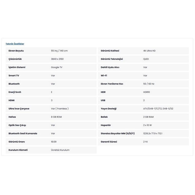 ONVO 55OVF9250UQ 55'' (139 EKRAN ) TV