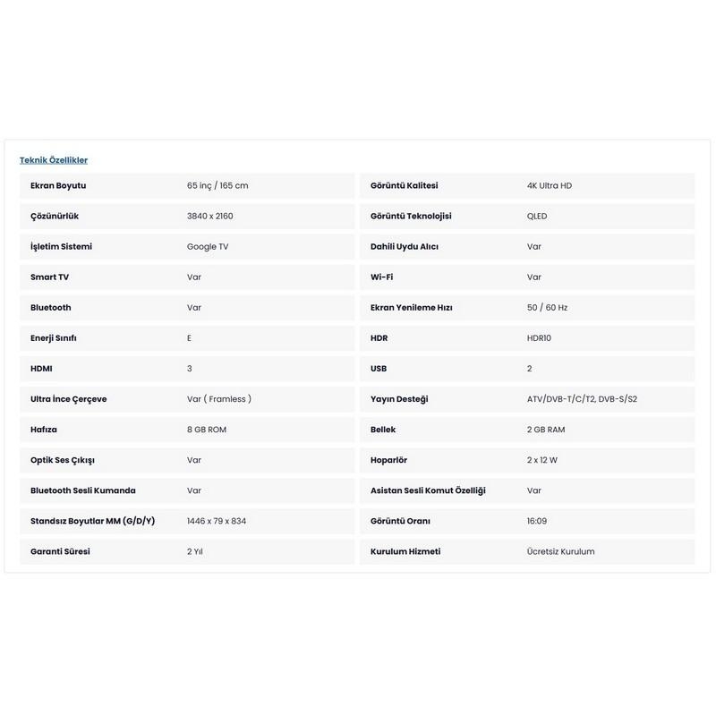 ONVO 65OVF9250UQ 65'' ( 165 EKRAN ) TV