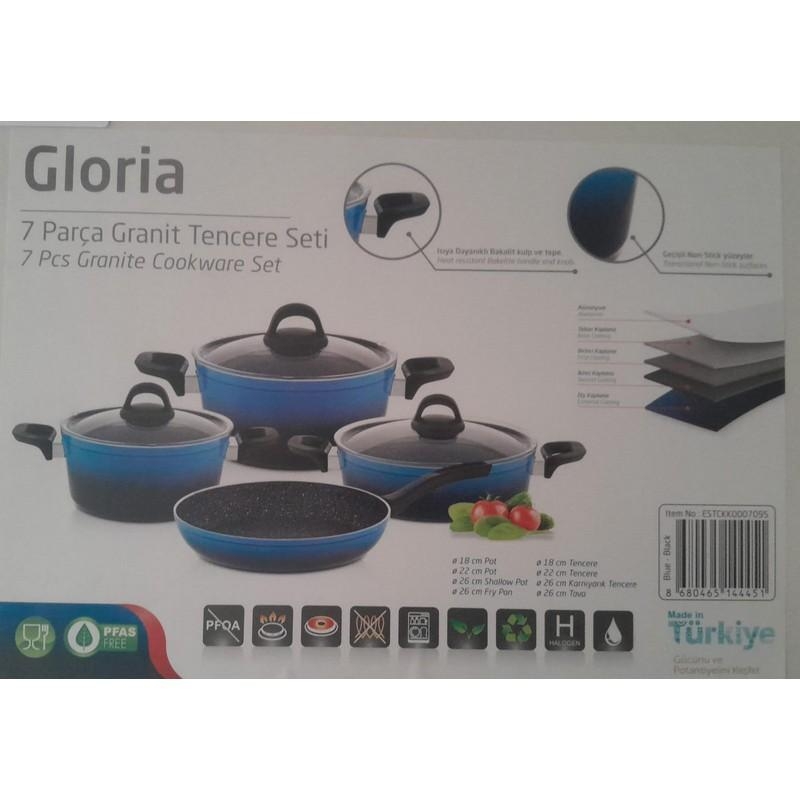 HASCEVHER GLORİA 7 PRÇ SİLİKON TENCERE SETİ SİYAH MAVİ 2.7 MM (18/22TEN/26KAR/26TV)