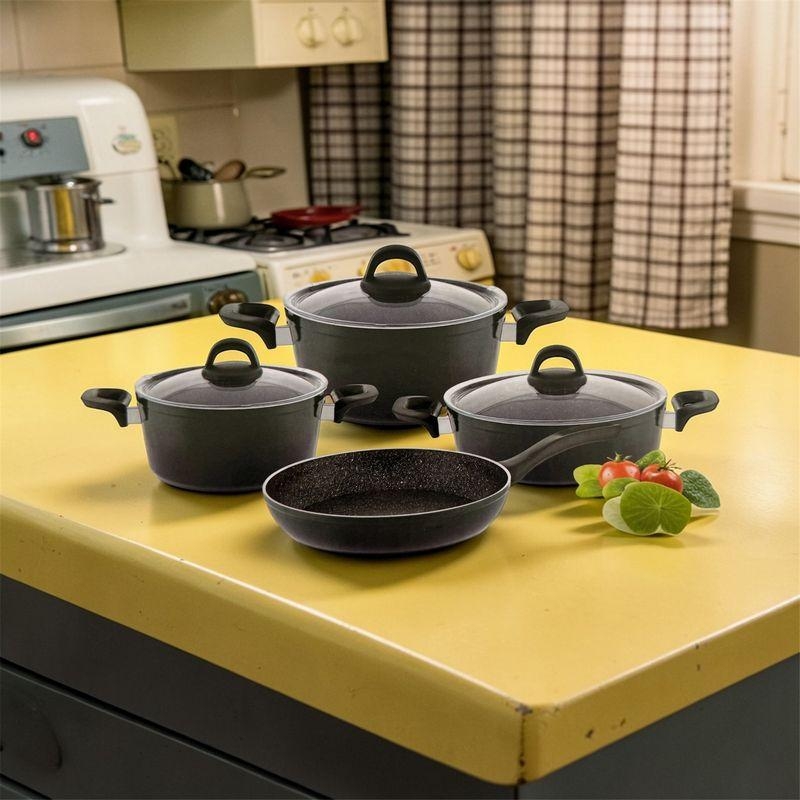 HASCEVHER GLORİA 7 PRÇ SİLİKON TENCERE SETİ SİYAH YEŞİL 2.7 MM (18/22TEN/26KAR/26TV)