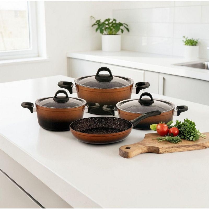 HASCEVHER GLORİA 7 PRÇ SİLİKON TENCERE SETİ SİYAH BAKIR 2.7 MM (18/22TEN/26KAR/26TV)