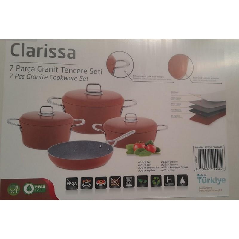 HASCEVHER CLARİSSA 7 PRÇ GRANİT ELMAS SOMON TENCERE SETİ (18/22TEN/26KAR/26TV)