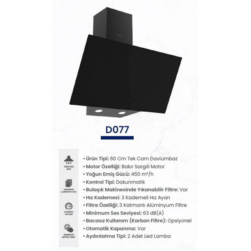 FERRE D077 TEK CAMLI DOK. 60CM SİYAH DAVLUMBAZ