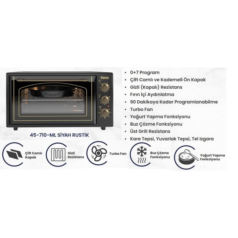 FERRE 45-710-ML 45 LT MİNİ FIRIN SİYAH RUSTİK