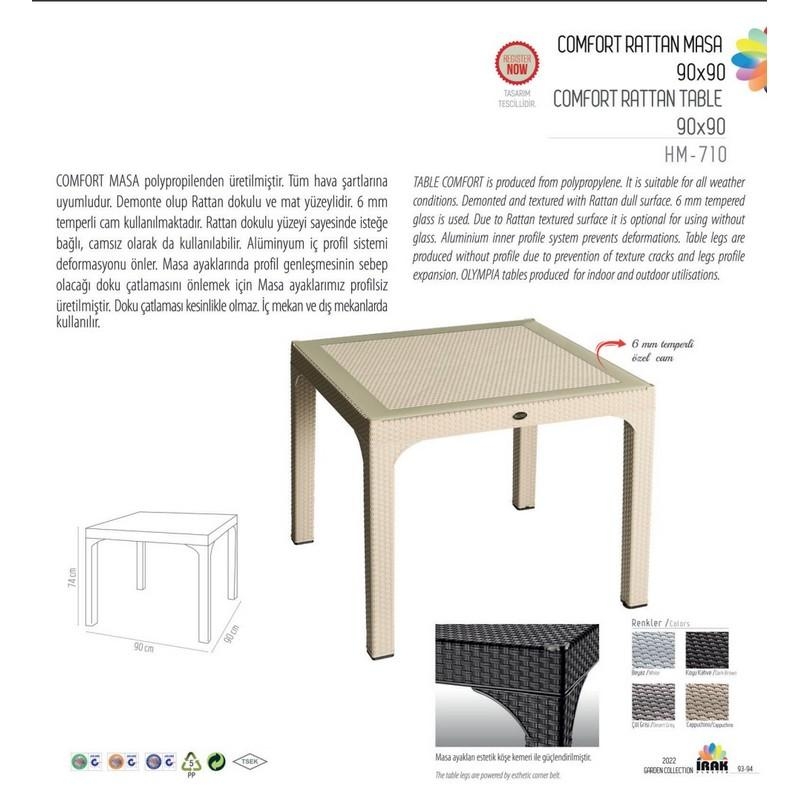HOLİDAY GARDEN 90*90 RADDAN *CAMLI MASA BEYAZ
